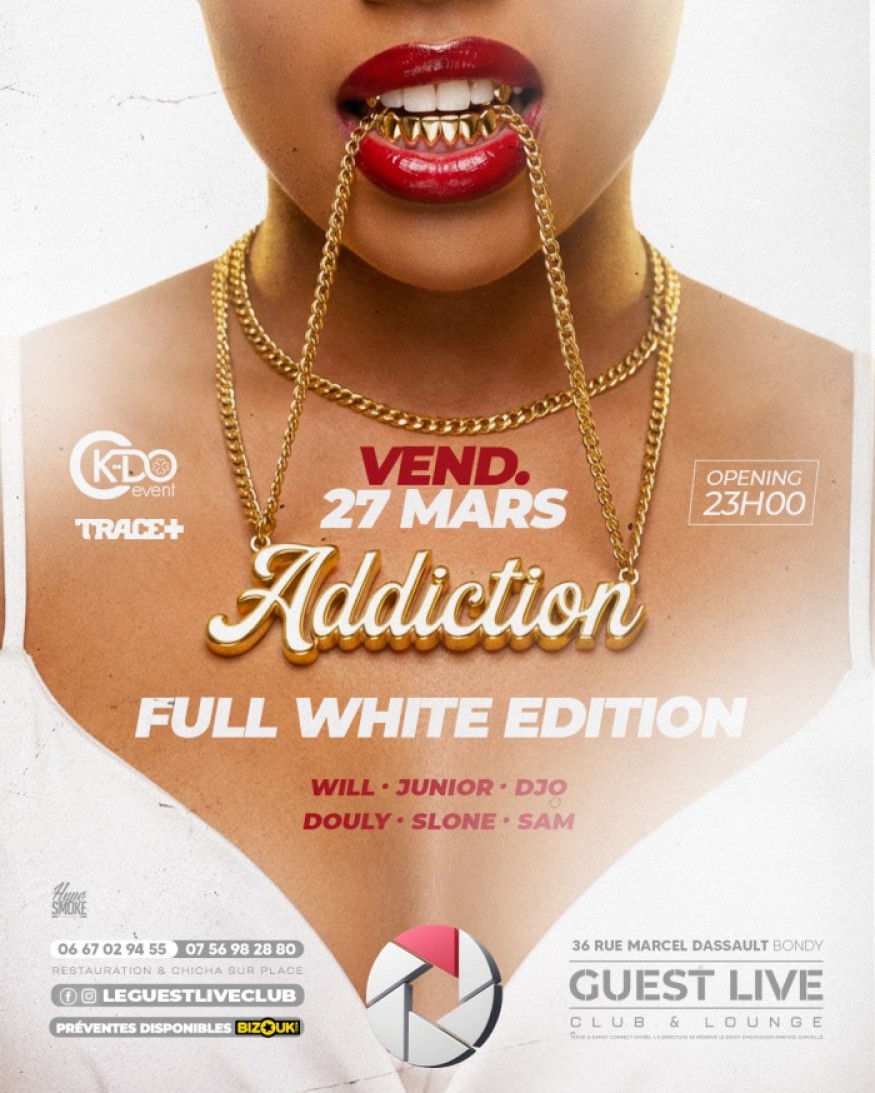 VENDREDI 27 Mars c’est Addiction dress code TOUS EN BLANC
